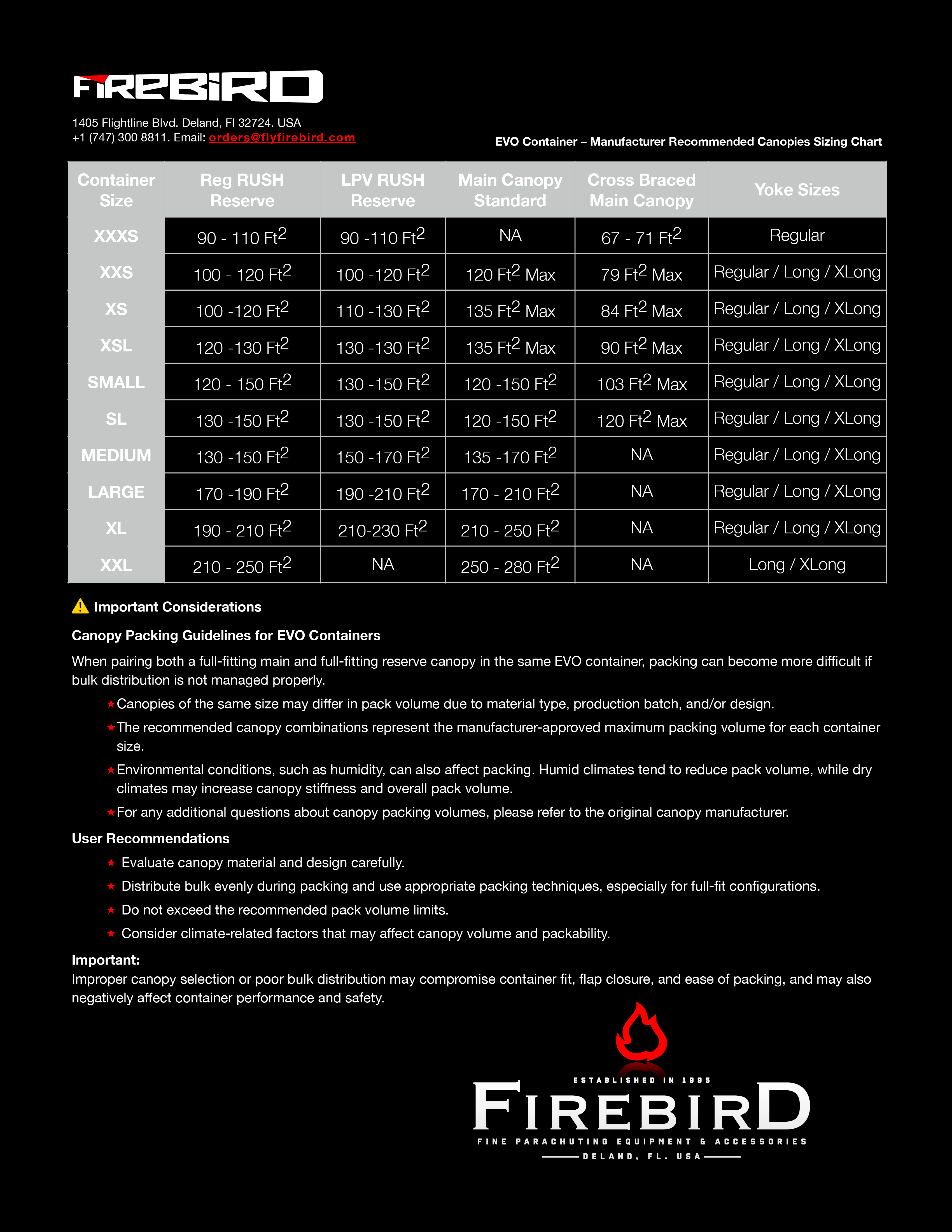 For additional information: ORDERS@FLYFIREBIRD.COM
